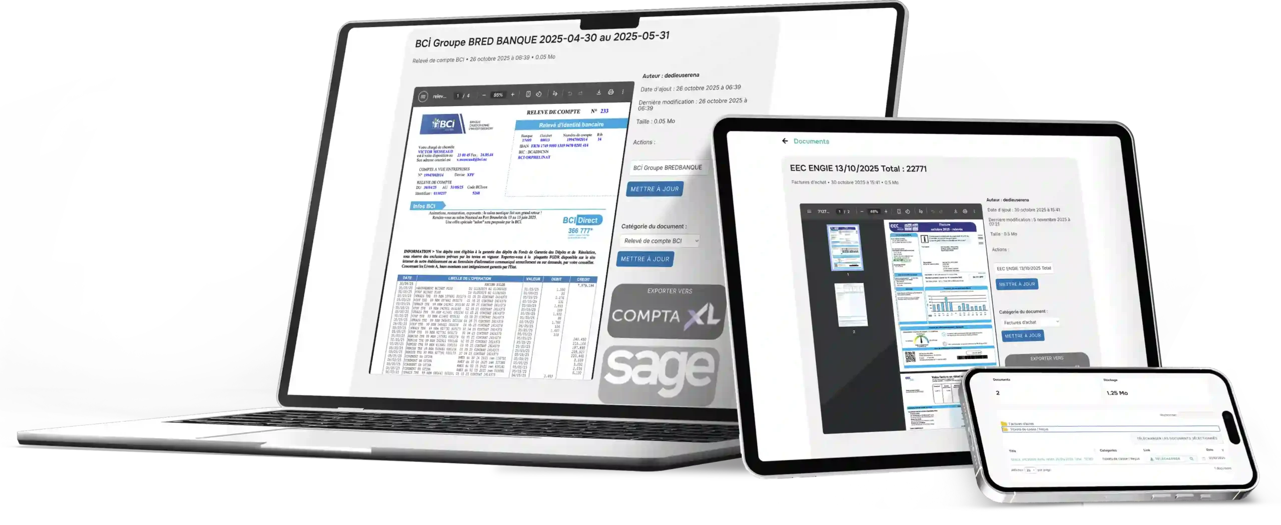 Glissez-déposez vos documents.Formats acceptés : PDF, images (JPG, PNG), et même des photos prises directement depuis votre smartphone.