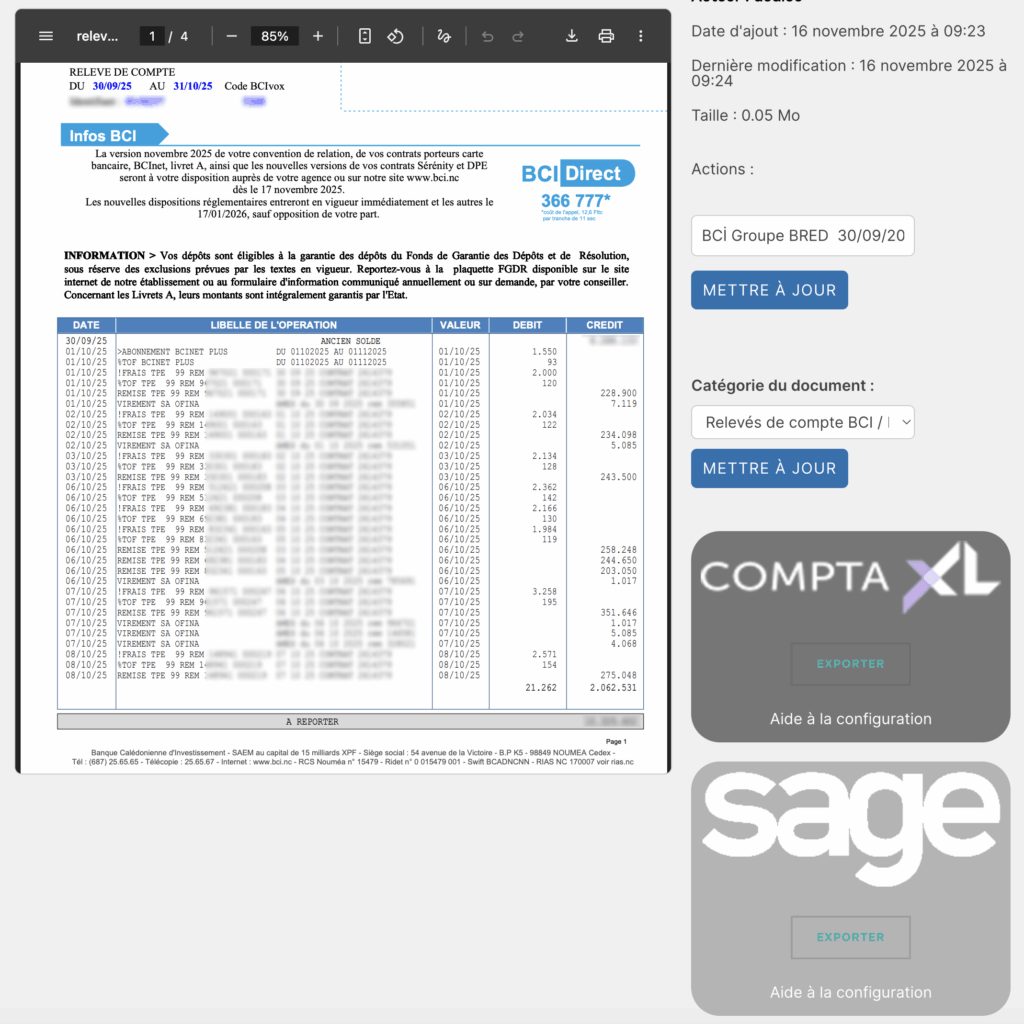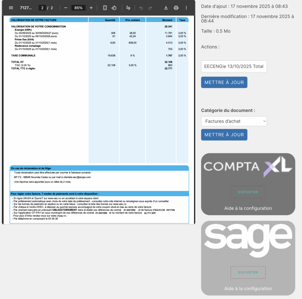 Une fois l’analyse du document terminée, le document apparaîtra automatiquement avec le nom complet , date du document et montant total.