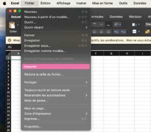 L’import s’effectue grâce à la fonction Fichier > Importer après sélection du format Écritures