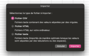 Puis choisir Type de fichier : « Autres (.CSV) »