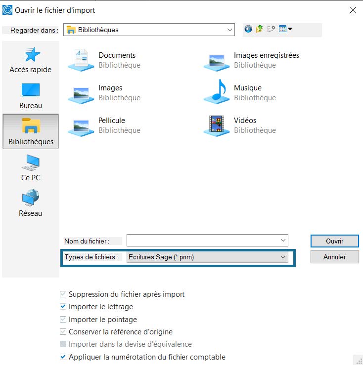 Utiliser le fichier d'export vers SAGE Comptabilité :